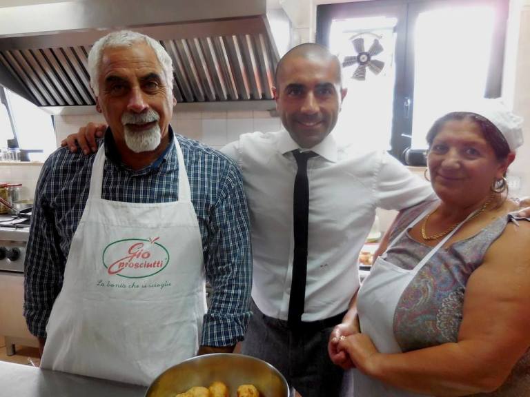 In cucina, infatti, ci sono i genitori di Roberto, Giovanni Pepe e Michela Natale. Una cucina semplice, di territorio, al centro l’esaltazione della meravigliosa materia prima che questi luoghi offrono: tartufo in primis (siamo a poche spanne da Bagnoli Irpino), latticini, ortaggi, carni e grandi vini!!! Ma siamo anche, come al solito, in regime di ottimizzazione pignatica e sul tavolo, oltre alle innumerevoli leccornìe solide nuscane, abbiamo anche un bel po’ di “lavoro liquido”, rosso, bianco e persino rosato, che Giacomino ha pensato bene di portarsi “da casa”!!!