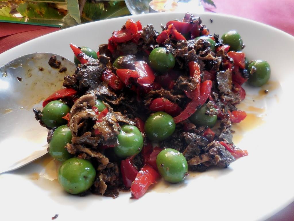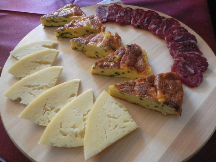 E qui comincia una tale sfilata di antipasti, caldi e freddi, da far impallidire persino la bella faccia rubizza di Alessandro Barletta, il re di Slow Food Taurasi!!! I nostri occhi ridono, sembriamo tanti bambini davanti alla vetrina del miglior negozio di giocattoli della città… si parte dalla stupenda Insalata Bagnolese, un mix ben dosato di olive, pupacchie (papaccelle), alici salate, sì quelle del fiume Calore :-), e tartufo di Bagnoli, per continuare con gustosissimi prodotti caseari dei Fratelli Meluzio di Nusco, ottimi la ricotta ed il caciocavallo, ma una spanna più in alto la treccia!!!