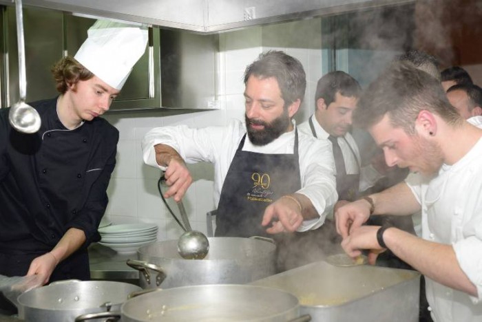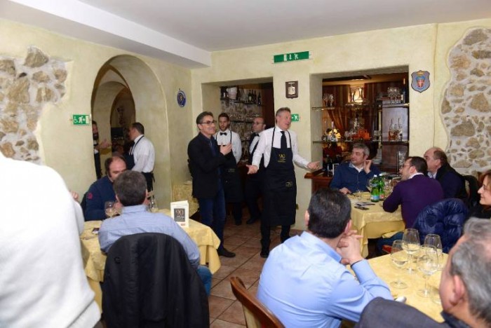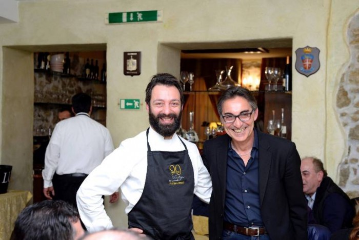 I piatti, preparati con ottime materie prime dei due territori e presentati in modo moderno, hanno avuto il compito di celebrare i vini della cantina Paternoster rappresentata in sala dall’esponente della terza generazione della famiglia Vito Paternoster che in apertura ha spiegato agli ospiti che questi 90 anni vengono dedicati soprattutto ai due capostipiti, il nonno Anselmo e il papà Pino.