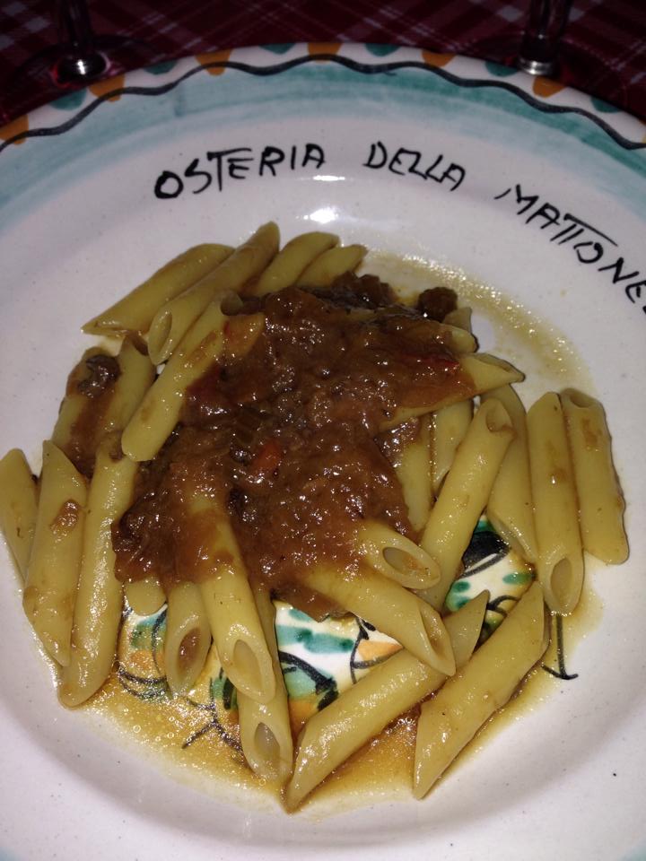 Il primo piatto vede scendere in campo la magistrale “pasta alla genovese”, preparata con ben tre tipi di cipolla, divina e da mangiare a qualsiasi ora del giorno e della notte.