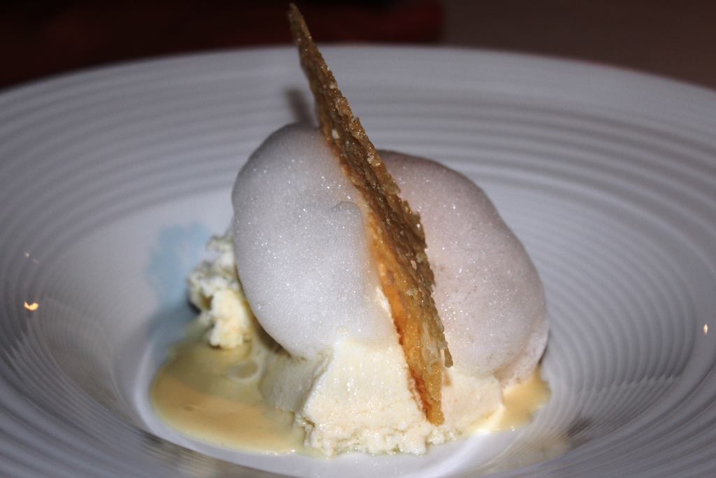 Osteria Francescana, Bianco, rosso e verde, crema di latte di bianca modenese, gelato di marasche e spuma di piselli