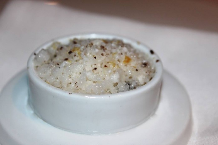 Osteria Francescana, Insalata invernale, riso con pomodori verdi, coppa ti testa mantecato all’olio d’oliva