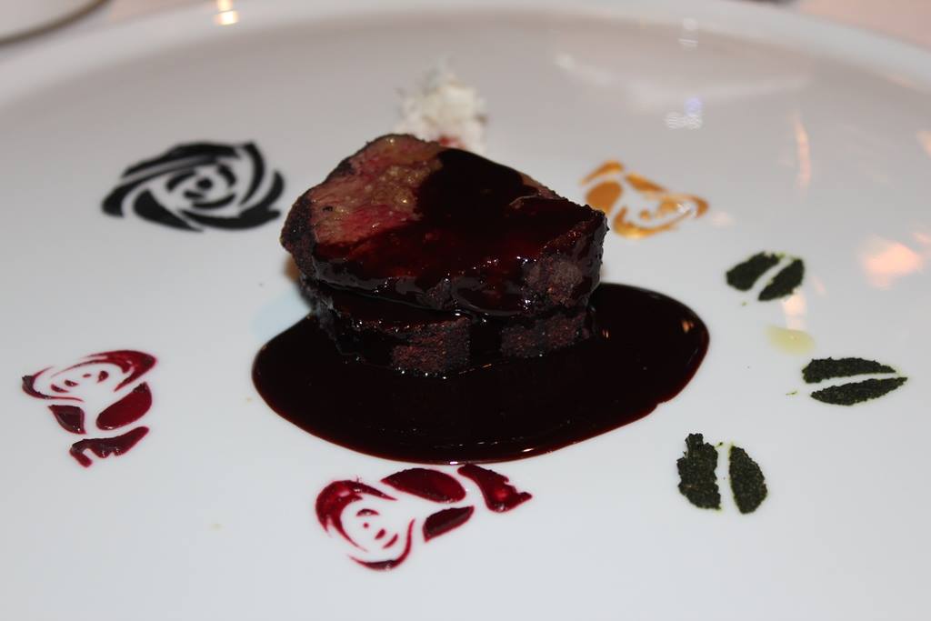 Osteria Francescana, Omaggio a Istanbul, cervo ripieno di foie gras con rose di salsa e salsa alla rosa