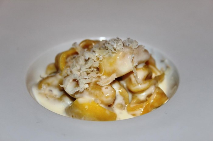 I piatti mangiati sono emozionanti dal primo all’ultimo, si parte dall’omaggio a Ferran Adrià e al suo Bulli però in chiave assolutamente italiana: aulla in carpione, macaron al pomodoro e mozzarella di bufala, caldo freddo di limoncello. Arrivano poi i meravigliosi tortelli cotti al vapore con gamberi e gelatina di cotechino, crema di lenticchie e lenticchie croccanti.