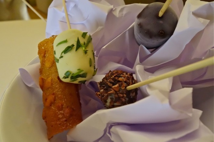 Delizie finali, su tutti le caramelle, quelle al fondente ripiena di gelato alla Fisherman’s Friend e quella al ciocciolato bianco ripiena di gelato al dragoncello.