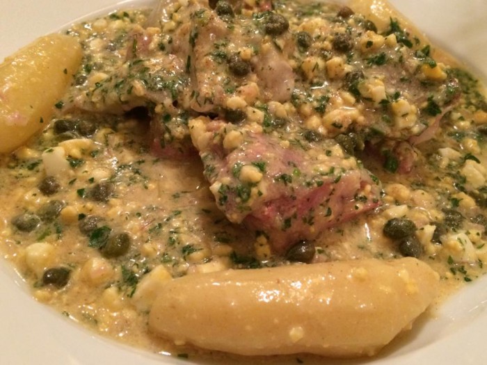 Tra gli antipasti, sicuramente il più godurioso e bisognoso di vino bianco sttutturato e acido. Ecco un piatto che potrebbe sfidare il Greco di Tufo.