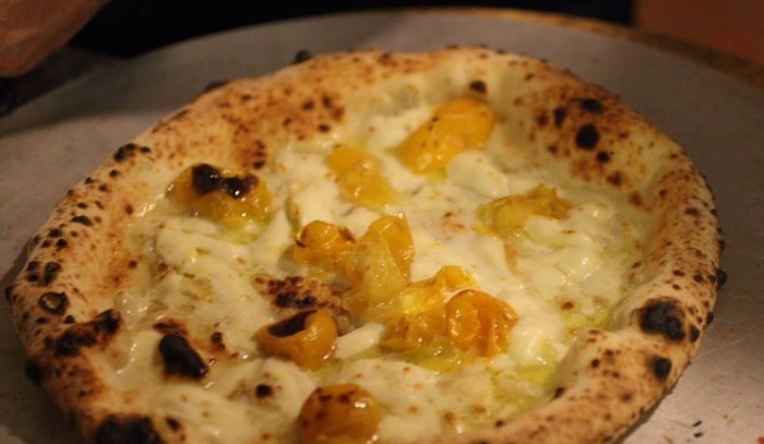 I palati sono stati letteralmente coccolati. Dopo il tris di fritti (timballo di pasta, crocché di patate, pizza fritta con cipollotto nocerino), è incominciata la degustazione di pizze: marinara con farina integrale cilentana, margherita, al pomodorino giallo in onore di Antonio Medugno, al baccalà, scarola e olive.