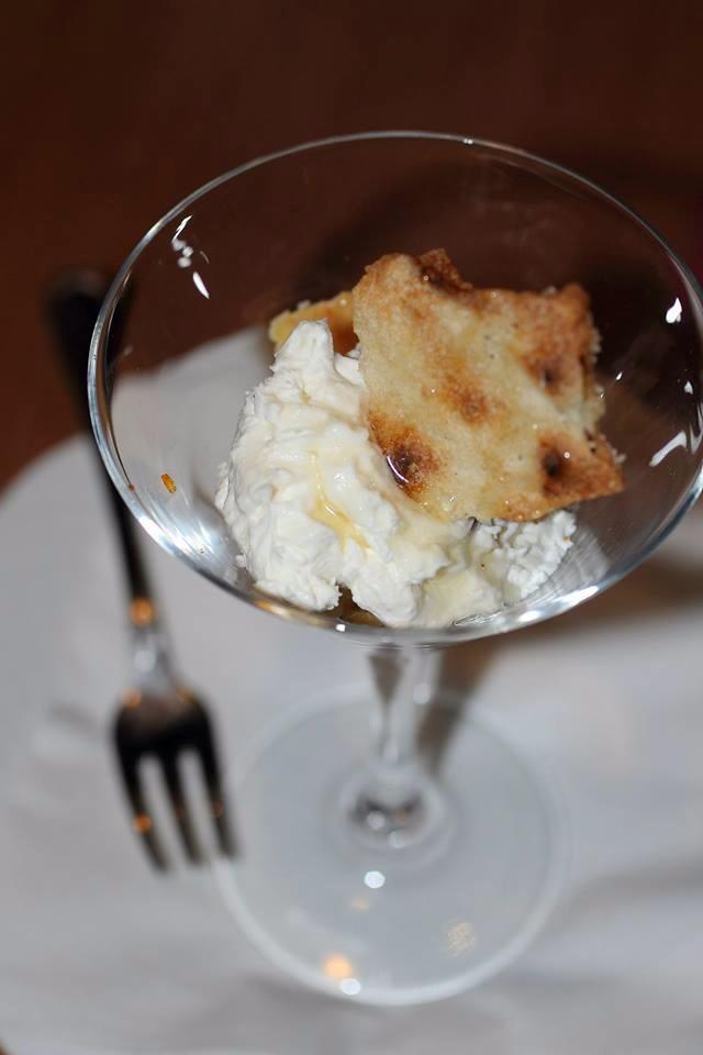 Un plauso particolare merita il dessert gustoso e ricercato: stracciata dei Monti Lattari variegata al miele con scaglie di arancia di Sant’Egidio del Monte Albino.