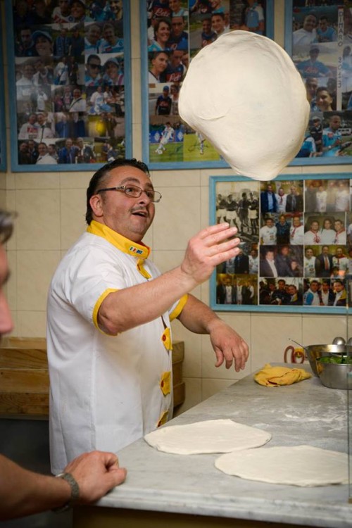 I fratelli Giustiniani, i “Capatosta” Enzo e Lello, nella loro pizzeria presso la Torre di Villa Porfidia a Recale, preservano e difendono la preparazione della tradizionale pizza napoletana Stg.