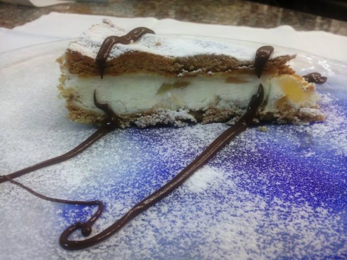 In chiusura di pasto si può scegliere uno dei dolci della casa: tiramisù, torta ricotta e pere, torta con cocco, ricotta e nutella, biscotti secchi di pasta frolla con marmellata, torta con pan di spagna, crema e fragole o con crema e frutti di bosco.