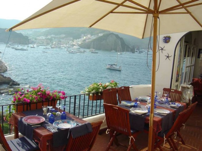 Tre terrazze panoramiche con una vista, che da sola vale la sosta, si aprono sopra al porto di Ponza. I tavoli ed i piatti sono molto originali.