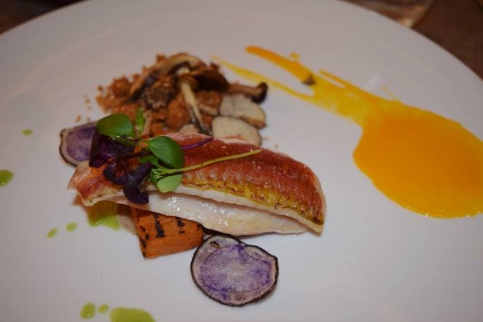 Per i secondi si giocano la palla carne e pesce, con la triglia adagiata sui sapori dell’Autunno e l’ossobuco teriyaki, mousse di patate e tartufo, aceto balsamico e senape.
