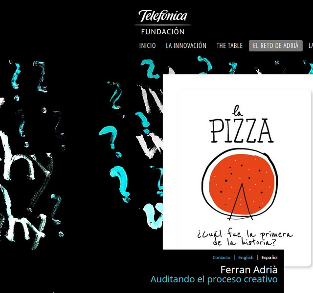 Ora da qualche settimana sul suo Auditando el proceso creativo, una sorta di brain storming blog in cui raccoglie suggerimenti e proposte, compare il post con la domanda ¿Cuál fue la primera pizza de la historia?