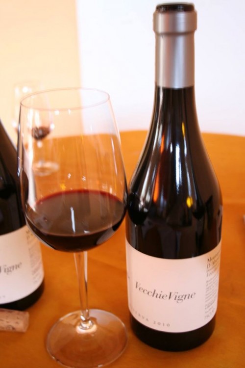 Apriamo un po’ di bottiglie del suo magnifico “Vecchie Vigne” partendo dal 2009 che si mostra subito al naso con liquirizia nera fusa a frutto rosso leggermente in confettura. Riccardo mi conferma che l’annata è stata molto calda. I profumi vertono verso l’amarena cotta, tabacco e carrubo; al palato diventa esuberante, caratteristica comune a tutti i vini, attacca con acidità e tannini di rango che vengono equilibrati con la morbidezza del frutto, la chiusura è sapida e succulenta.