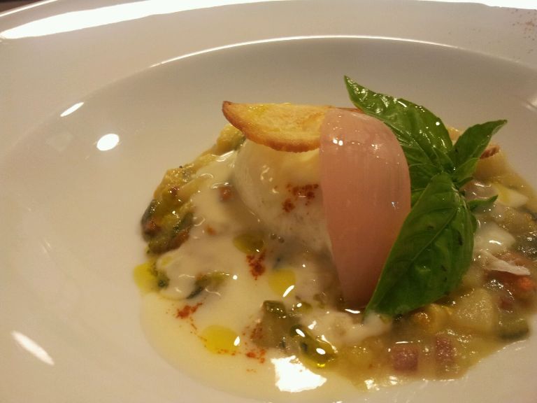 Ciambottina estiva con fagottino d’uovo e salsa di caciocavallo del Ristorante Morese