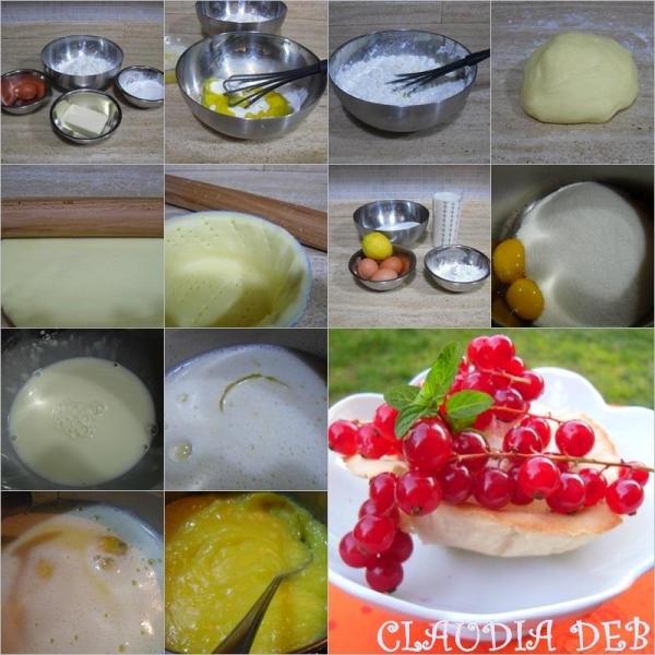 Prepara la crema: sciogli l’amido in un bicchiere di latte tiepido. Versa in un pentolino lo zucchero e i tuorli e mescola con la frusta. Versa il latte a filo. Aggiungi la buccia di limone e il latte con l’amido. Metti sul fuoco e porta ad ebollizione, mescolando di continuo. Fai raffreddare.