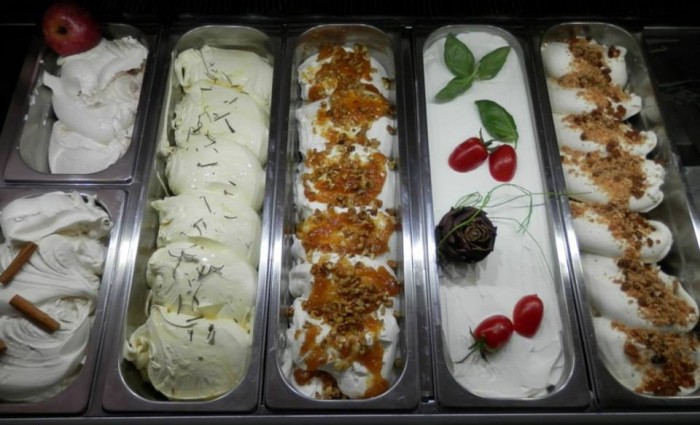 Ma a colpire sono senza dubbio i gelati. Signori gelati, composti da gusti ragionati, scelti, provati. Mai banali e tutti di alta qualità. Basti pensare al più “difficile”, a quel gusto che ha certamente bisogno di palati allenati e alla ricerca di alternative: “Ambrosia Consolatrice”. Già il nome rappresenta una promessa, ma è al gusto che o la sia ama o no. La lavanda degli Alburni di Donato Di Gorga, miele macerato a freddo e scorze di limone di Amalfi IGP.