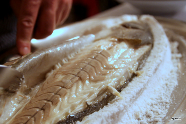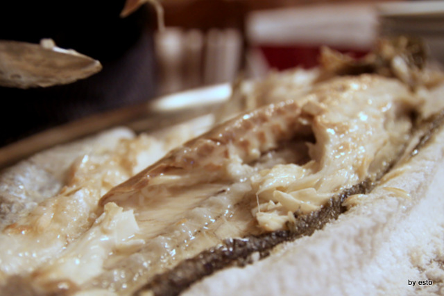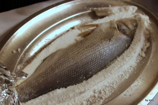 Vivida e sapida in sé, ma di un sapido marino saporito, la Spigola cotta in crosta.