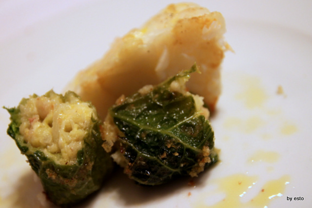 Così pure gli involtini di verza, croccante e minerale, con il cuore di mussillo mantecato.