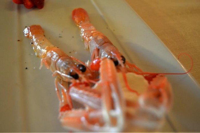 Seguono adesso una serie di assaggi coinvolgenti, lavorati come la migliore tradizione crudista Pugliese impone. Pochi abbinamenti, giuste temperature di servizio, lavorazioni semplici e veloci, eseguite con tagli che rispettano la straordinaria materia prima, che qui non ha davvero rivali. Un vero delitto sarebbe considerato in questa regione cuocerne le carni. Unica concessione, e non poteva essere altrimenti visto che il territorio circostante lo consente, alcune gocce d’olio extravergine d’oliva, che conferiscono personalità ed un leggero ricordo di questa pianura. Sorprendono la delicatezza e la freschezza di queste carni, se ne apprezza davvero sino in fondo la qualità, un risultato frutto del lavoro e della conoscenza maturata dopo le tante ore passate ad aspettare il peschereccio giusto.