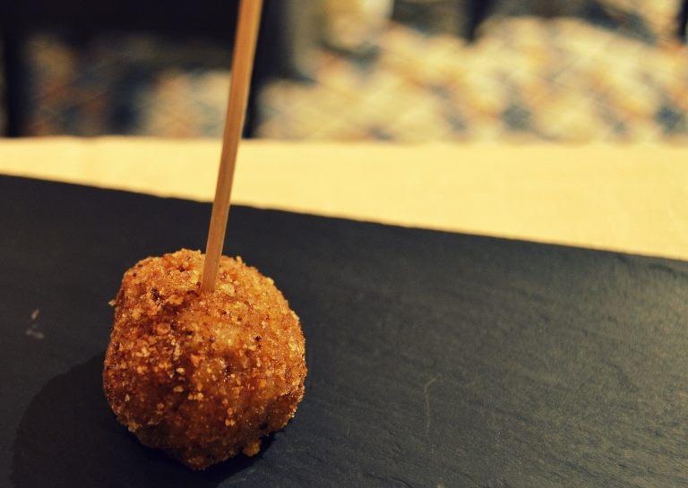 Adoro la semplicità con cui la giovane chef porta in tavola il più classico del pescato locale, i piccoli merluzzi dell’Adriatico che altrimenti non arriverebbero mai su di una tavola come questa. Lei ne ricava delle polpette di merluzzo e patate, queste ultime sono coltivate nei terreni salmastri della vicina città di Margherita di Savoia. Il tutto è panato con del pane realizzato da lei, come quello ai cereali che serve in tavola.