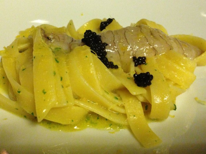 Scintilla, tagliatelle bottarga di muggine, limone, crudo di canocchie e caviale 9/8/2014 Torna a: Scintilla dell’Hotel Cocumella, alta cucina nell’albergo più antico di Sorrento Scintilla, tagliatelle bottarga di muggine, limone, crudo di canocchie e caviale← PrecedenteSuccessiva →