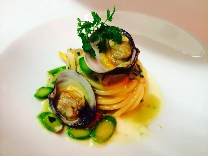 Spaghetti alle vongole con asparagi e salsa d’aglio dolce 28/7/2014 Torna a: Spaghetti alle vongole con asparagi e salsa d’aglio dolce Spaghetti alle vongole con asparagi e salsa d’aglio dolce