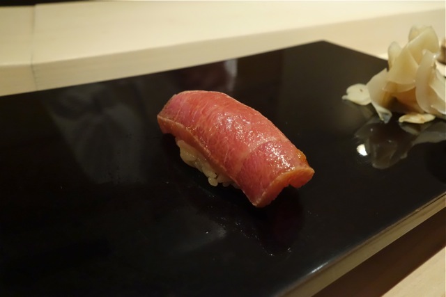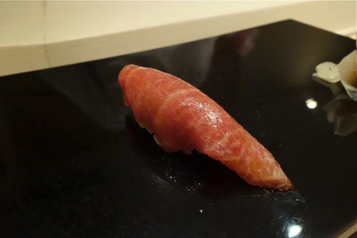 O Toro, la parte più grassa del tonno, lasciata a marinare nella soya. Un sogno.