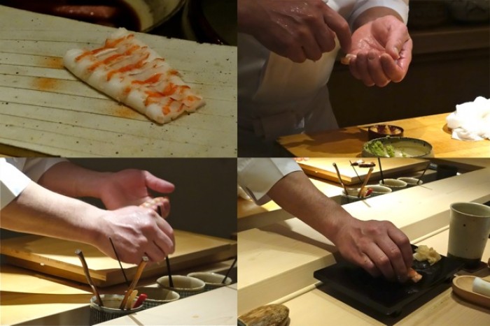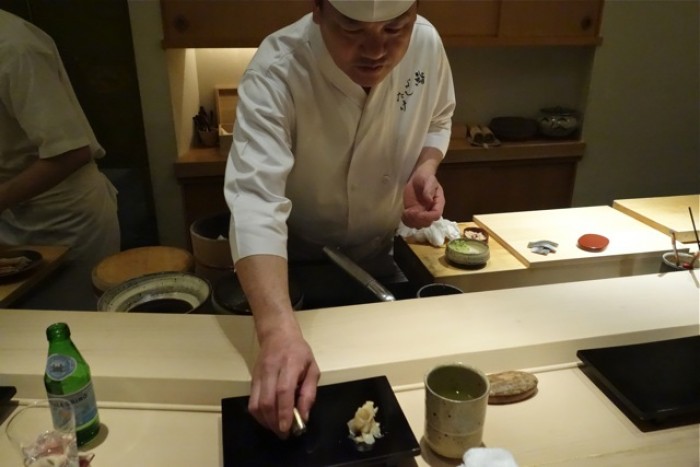 Yoshitake serve personalmente i suoi clienti, a mani nude.
