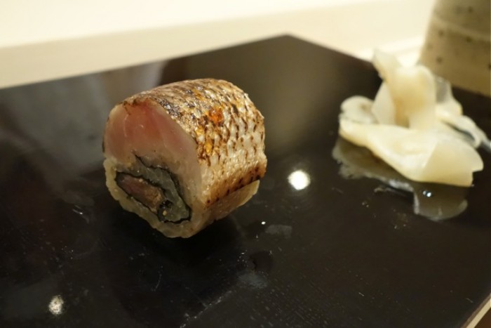 Il boccone migliore non siamo riusciti a capire esattamente cosa fosse. Un’involtino dal riso tiepido, con tonno ed una foglia fortemente aromatica, che ci ricorda in qualche modo la citronella.