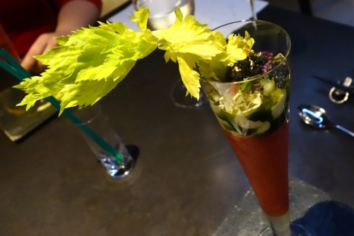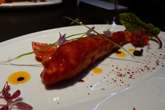 Si inizia con gli amouse bouche, il primo dei quali all’acqua di pomodoro, molto fresco.
