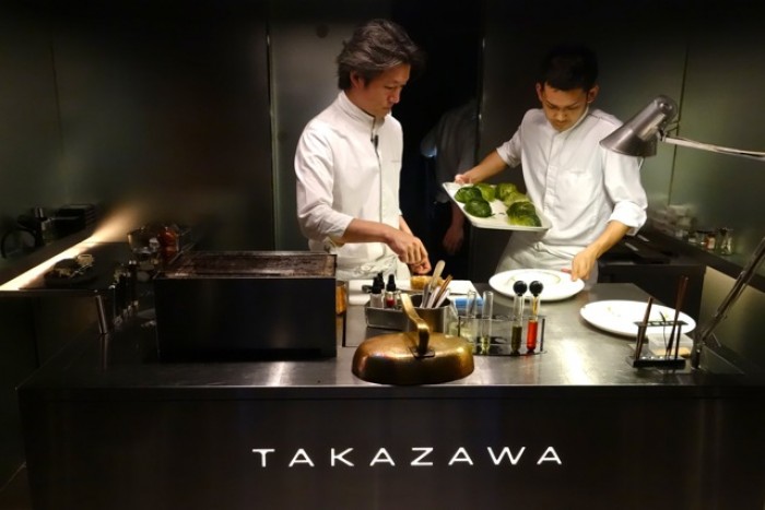 L’adagio sulla spalliera recita “I think that I have never seen a poem as lovely as a tree. Poems are made by fools like me, but only God can make a tree”. Questa scala porta alla sala di Takazawa, uno dei ristoranti più incredibili del mondo. Quattro coperti, fino al 2012, portati poi ad otto e recentemente a dieci, una lista d’attesa degna di un test alla facoltà di medicina.