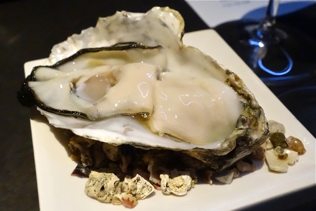 Ostrica. Chiediamo ad Akiko se questa è ripiena o lavorata in qualche modo particolare, tanto è morbida, poco gelatinosa e di rotonda consistenza. No è al naturale, cruda, con una semplice spruzzata di limone. Eccezionale.