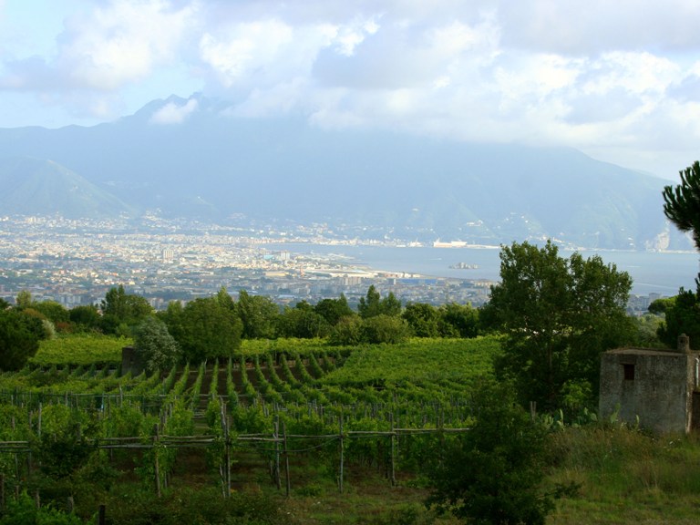 I filari sono ordinati e seguono l’andamento scosceso del terreno, in prevalenza Nord-Sud, che è stato disegnato dalle colate laviche e ricoperto dal materiale piroclastico di chissà quante eruzioni. Camminando tra le vigne, il lato nord offre una splendida veduta dal basso del cono del Vesuvio, mentre voltandosi verso Sud lo sguardo abbraccia Capri, la penisola sorrentina, nel lato rivolto verso Napoli e il Monte Faito.