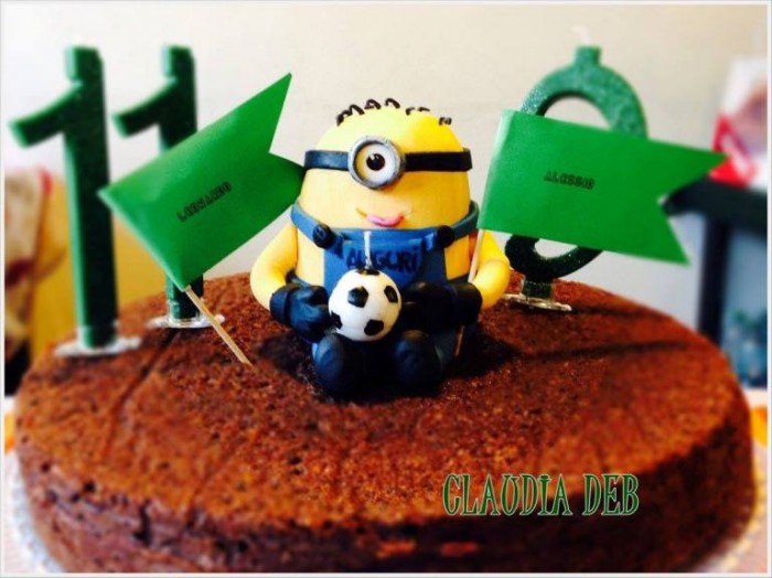 Sulla tasca della salopette, i minion hanno un logo, io ho preferito scrivere “AUGURI” con il pennarello alimentare nero.
