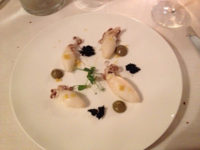 Di grande piacevolezza e armonia del palato risultano anche i Calamari al vapore, cremoso di baccalà, pane al nero e pesto di olive verdi.