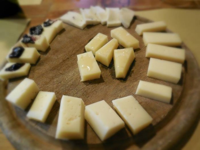 Prosciutto Bazzone al coltello, mortadella di Prato al coltello, salsiccia ovviamente cruda, biroldo al coltello della Garfagnana, formaggi pecorini, marmellate, miele, polenta calda formaggio e tartufo, cipolle, funghi, farro della Garfagnana, crostini con creme di piacere, lardo fuso. Pane di castagne con trota affumicata della Garfagnana e sicuramente altro.