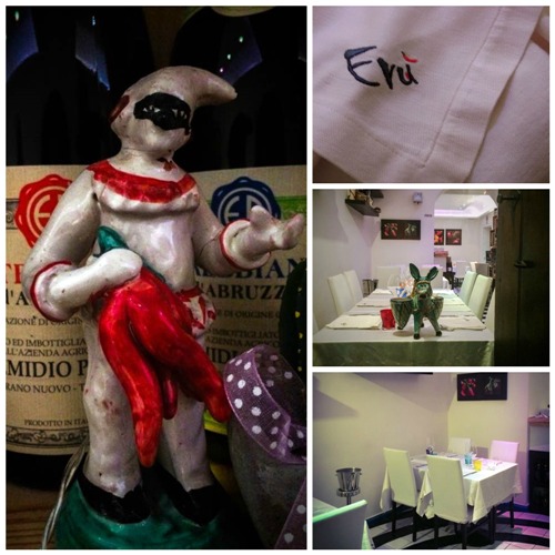 Colpisce subito l’occhio e crea guerriglia tra le papille gustative la “Fellata pasquale secondo Evù” (uova, prosciutto di tonno, maionese, crema di ricotta di bufala). Nonostante alla vista il piatto resta fiero, il prosciutto di tonno è troppo aggressivo per poter apprezzare a pieno tutti i componenti. Ma è un nuovo piatto, certamente lo hanno già affinato.