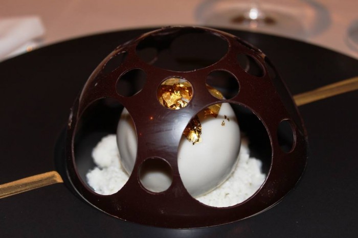 La Pasticceria è elegante e divisa su due fronti, uno legato al cioccolato l’altro alla frutta, è uno dei cavalli di battaglia di Villa Crespi, mai banale anche qui molto personale, trova forme intriganti, golosità e mai zuccheri in eccesso.