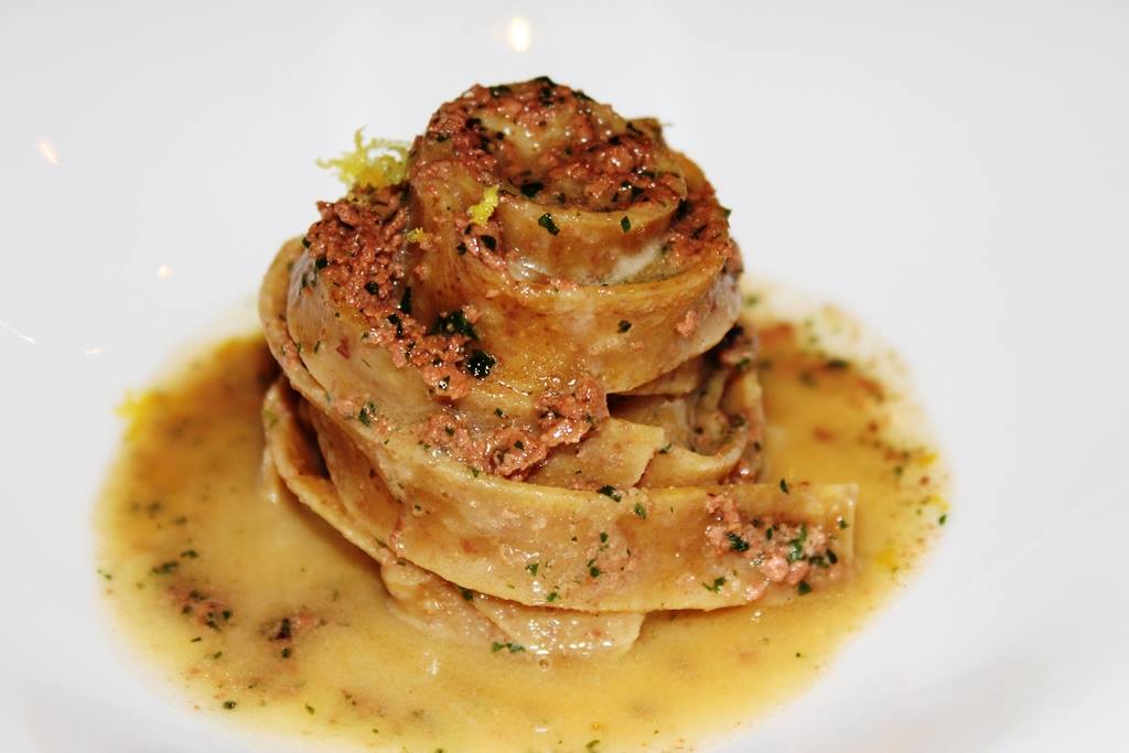Tanti spunti nella cucina, come le tagliatelle fatte con farina di fagioli, aglio olio e bottarga. Una pasta e fagioli 2.0 che trova spunti marini, persistenti e difficili per certi versi, ma molto buone.