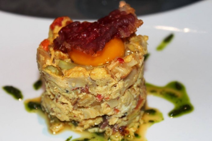Vinile, frittatina di uovo Paolo Parisi, con verdura di stagione provola affumicata, prosciutto di maiale nero casertano