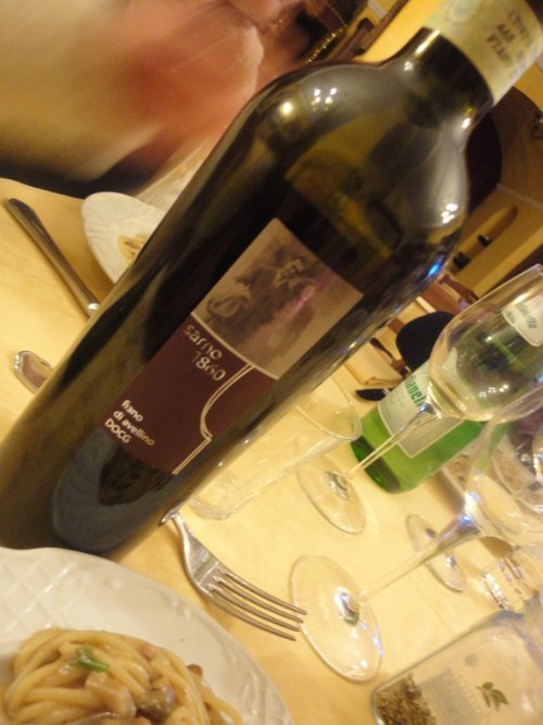 L’assaggio è a cura di Rita Picariello, moglie e chef (bravissima)personale di Ciro. Cru da uve di Summonte. Giallo paglierino pieno. Naso elegantissimo di fiori bianchi(gelsomino), di frutta a pasta bianca(pesca) e leggera nota fumè che sappiamo con gli anni diventerà più insistente. La beva è decisa, anche se le sottili sensazioni ti accompagnano dolcemente verso un altro sorso. La freschezza si impadronisce della bocca, ma viene subito riequilibrata dal notevole corpo del vino. L’allungo è poderoso.