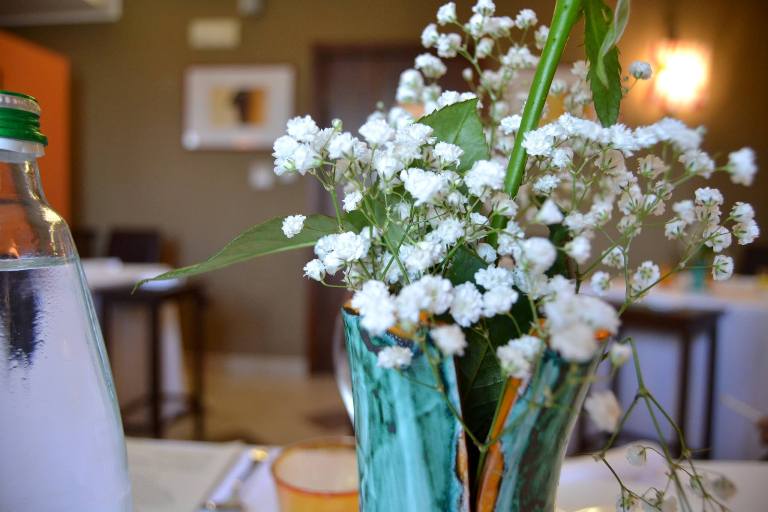 Rara, curata e gradevolissima l’accoglienza riservata agli ospiti della Locanda, che, oltre alla naturale ed attenta presenza dello Chef Vitantonio Lombardo, si avvale della professionalità del giovane Maitre Donato Addesso, il quale riesce, senza quasi farsi notare, a soddisfare con attenzione e premura, i desideri e le esigenze degli ospiti, durante tutta la loro permanenza in Locanda. Una classe ed un’innata vocazione all’ospitalità tipica d’altri tempi.
