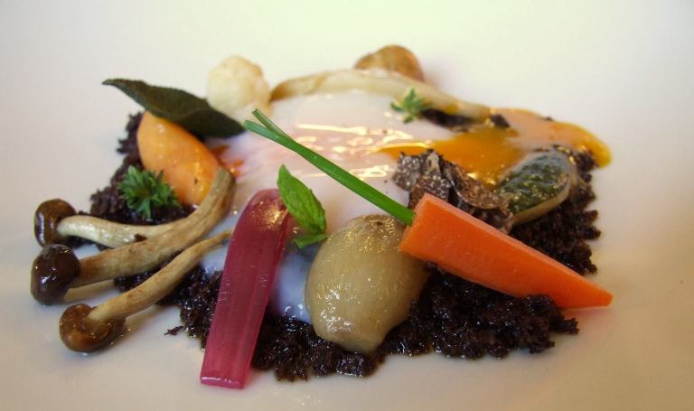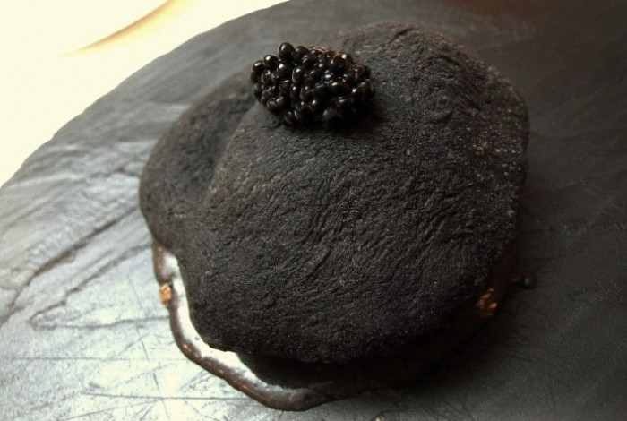 Da solo questo piatto, Pizza in Black, merita il viaggio sino a Locanda Severino, si tratta di un impasto al 50% di farina 00 e di manitoba, il colore nero è ottenuto attraverso un infusione di carboni attivi. Lunga lievitazione in frigo e poi frittura per la cottura. La pizza nera viene adagiata su di una salsa al porto, ricotta lavorata e tante, tantissime lamelle di tartufo nero raccolto nell’agro di Caggiano, il tutto è rifinito sulla parte superiore con del caviale nero di tartufo.
