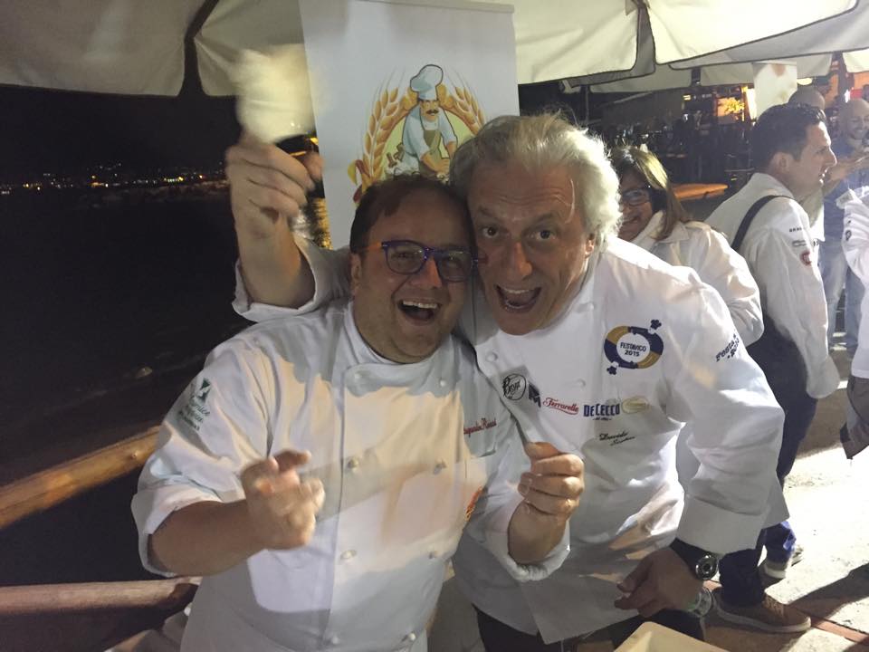 Festa a Vico. Pasqualino Rossi fa il pizzoso con Davide Scabin