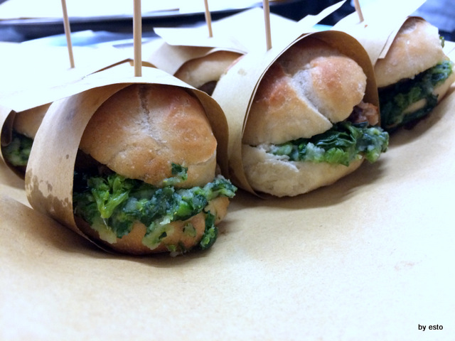 Racchiusa in un panino con rape e patate, il mallone, e maionese di papaccelle sottoaceto.