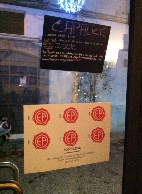 Ed è, infatti, la figlia Sofia a guidare una splendida verticale di Montepulciano d’Abruzzo presso l’Enosteria Cap’Alice a Napoli, la quale afferma che -in realtà- il papà è stato fortunato ad avere 3 figlie femmine già solo per la pazienza che le caratterizza. Fortunato per davvero, Emidio direi, visto l’entusiasmo coinvolgente che Sofia trasmette in queste occasioni.