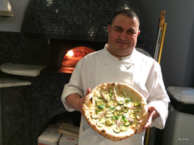 Pasqualino Rossi – Pizzeria Elite Alvignano (Ce) – Estate Riccia 2015: scarola riccia, alici di Cetara, olive nere Caiazzane, bufala affumicata e olio extra vergine di oliva varietà itrana badevisco
