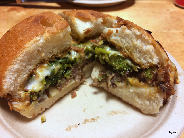 Si comincia con il Marchistrit farcito ordinariamente con fettine di muscolo stufato tra gli aromi, provolone del monaco e funghi porcini. Io ho preferito la variante con friarielli, ottimi.