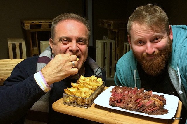 In due si può accedere alla bistecca frollata 45 giorni e marezzata di grasso che la rende in cottura soave.